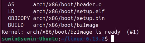 Kernel: arch/x86/boot/bzImage is ready (#1) 문구가 뜨면 성공한 것이다.