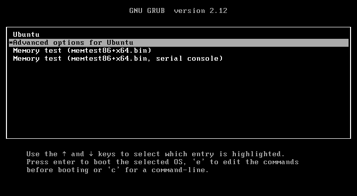 그러면 이런 화면이 뜨면 Advanced option for Ubuntu 클릭