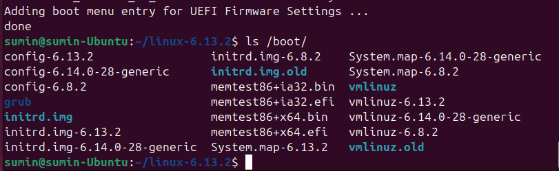vmlinuz-6.13.2가 설치 된 것을 알 수 있다.