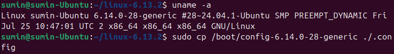sudo cp /boot/config-6.14.0-28-generic ./.config