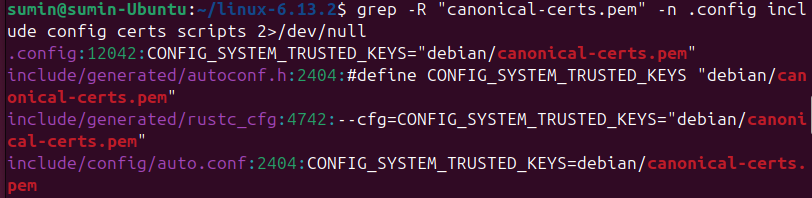 grep -R "canonical-.*\.pem" -n .config include/config/auto.conf include/generated/autoconf.h include/generated/rustc_cfg || echo "OK: no canonical pem refs"