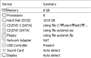 원활한 환경 설정을 위해 vm 하드웨어는 다음과 같이 설정하였다.